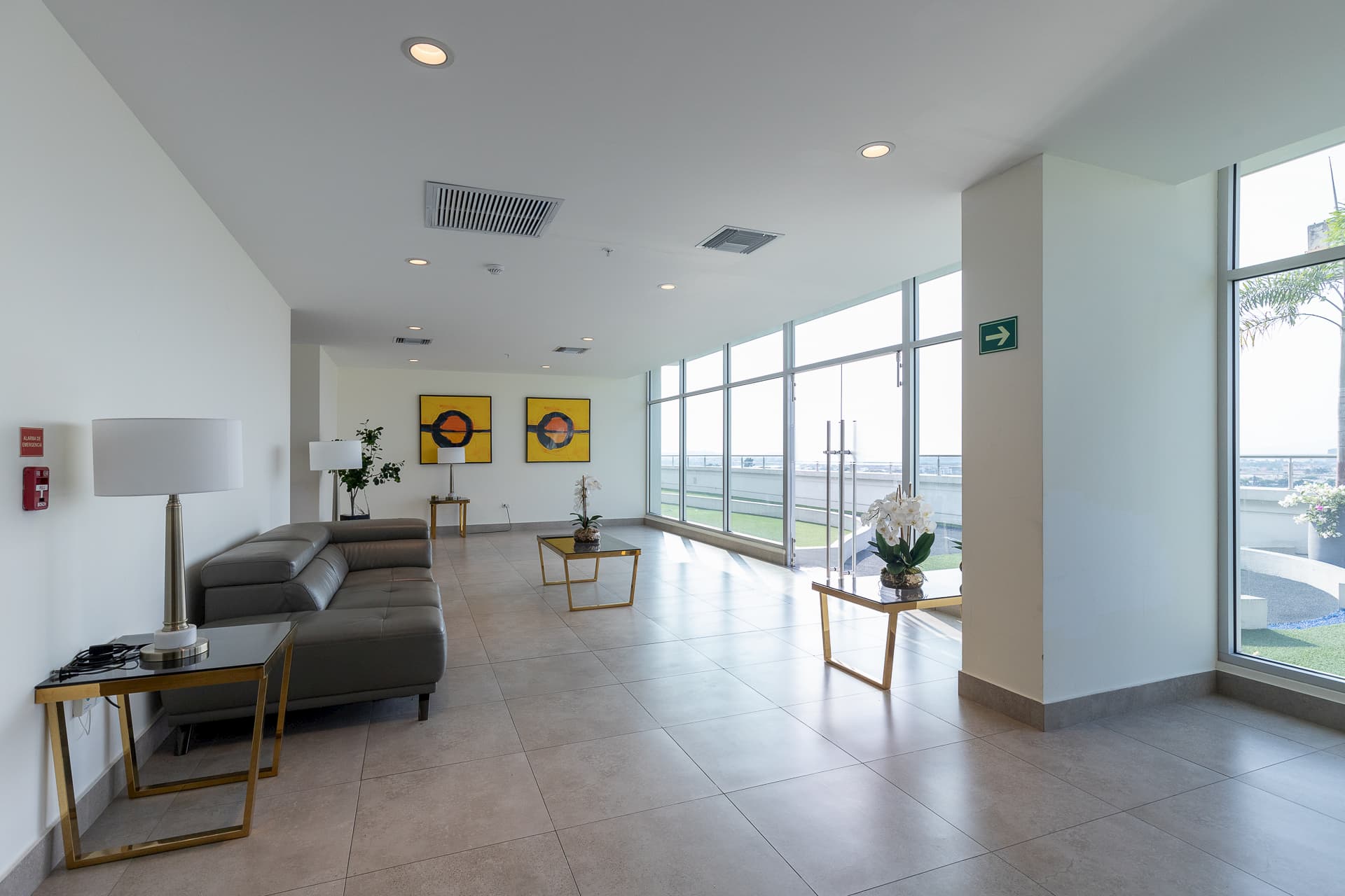 Km 1.5 vía Samborondón; detrás del Village Plaza