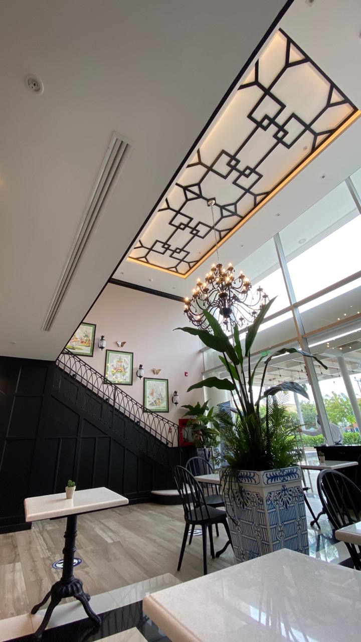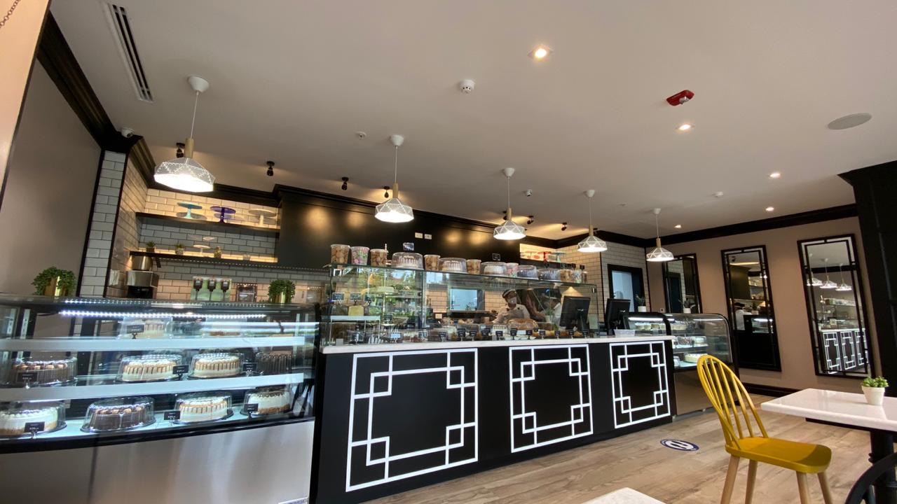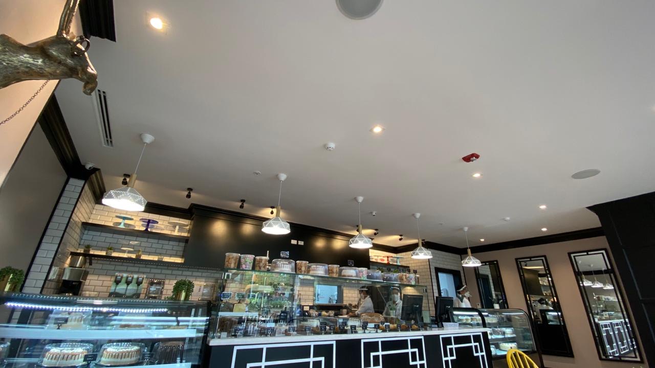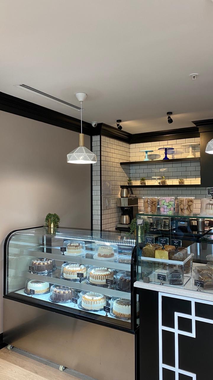 Pastry product sales and consumption store. This store has two levels: a ground floor for customer service at the front and a kitchen at the back, a mezzanine with tables for customers, and a production area at the rear. This store was air-conditioned with three units, which provide service as follows: