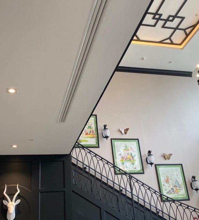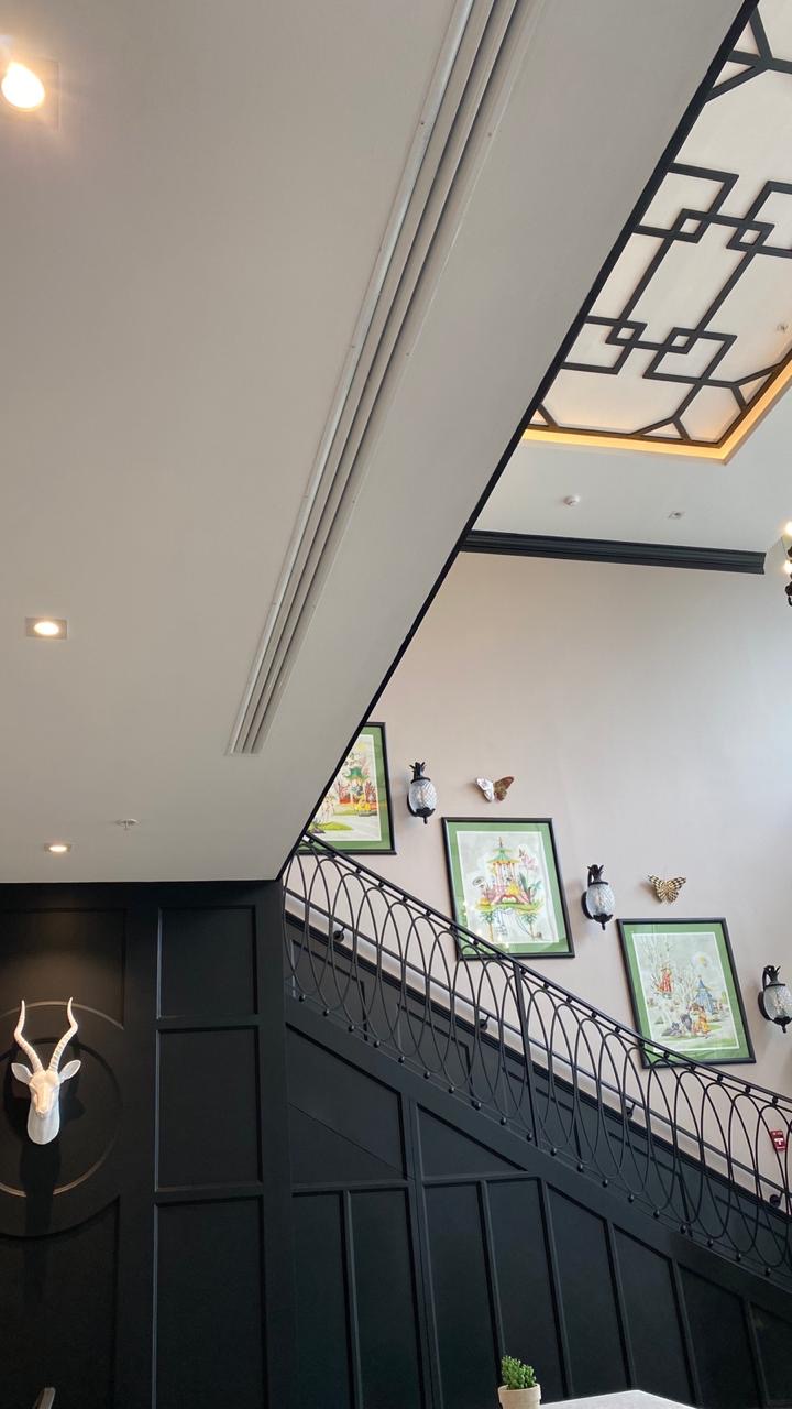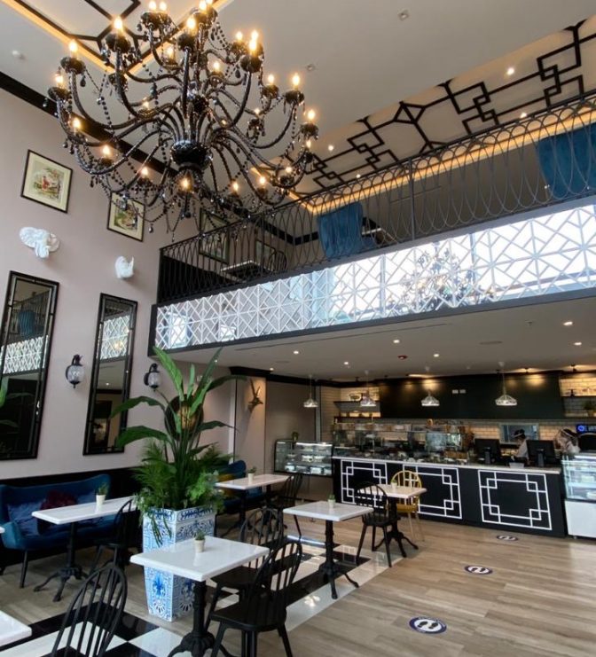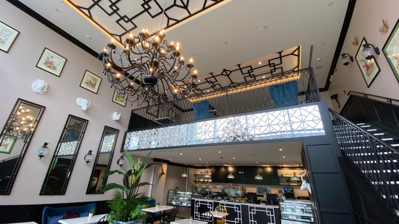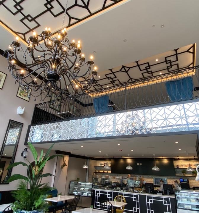 Pastry product sales and consumption store. This store has two levels: a ground floor for customer service at the front and a kitchen at the back, a mezzanine with tables for customers, and a production area at the rear. This store was air-conditioned with three units, which provide service as follows:
